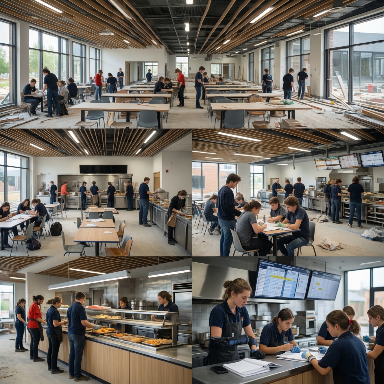 - Риск: шум/пыль и пересечение потоков детей и подрядчика. Мера: жесткое зонирование, отдельные входы/коридоры, расписание работ вне "окон" перемен.